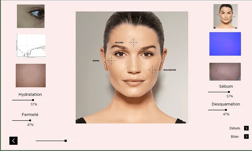 Přesně změří viditelné vlastnosti vaší pleti, ale odhalí i neviditelné, hloubkové problémy, a to ve 22 analýzách obličeje a těla, podložených fotografiemi a měřeními.